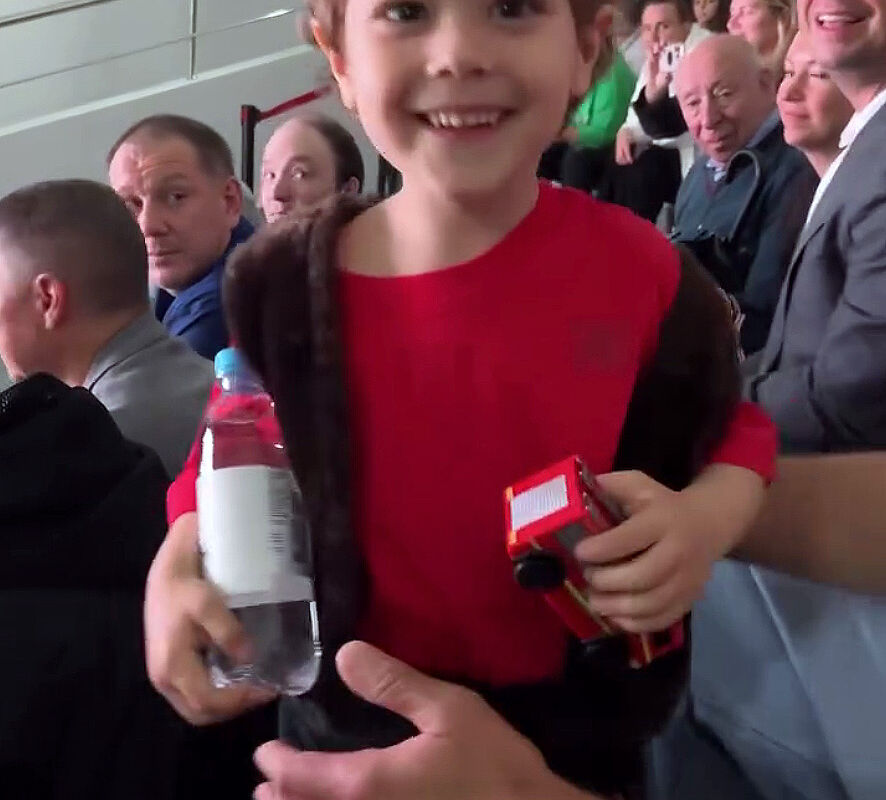 Елена Перминова сняла сына от Лебедева на сцене во время его второго выступления. Мальчик повторял заученный текст, а затем побежал к матери за поддержкой.