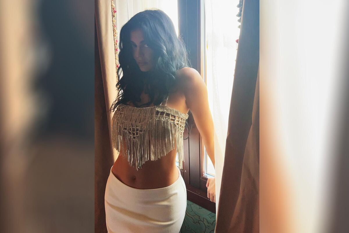На днях Кайли Дженнер вместе с семьей прилетела в Венецию на свадьбу миллиардера Джеффа Безоса и журналистки Лорен Санчес. На одну из вечеринок модель отправилась в металлическом крошечном топе без бюстгальтера и белой юбке. Звезде реалити-шоу уложили волосы в локоны и сделали макияж в нюдовых тонах. Она позировала у окна на вилле.