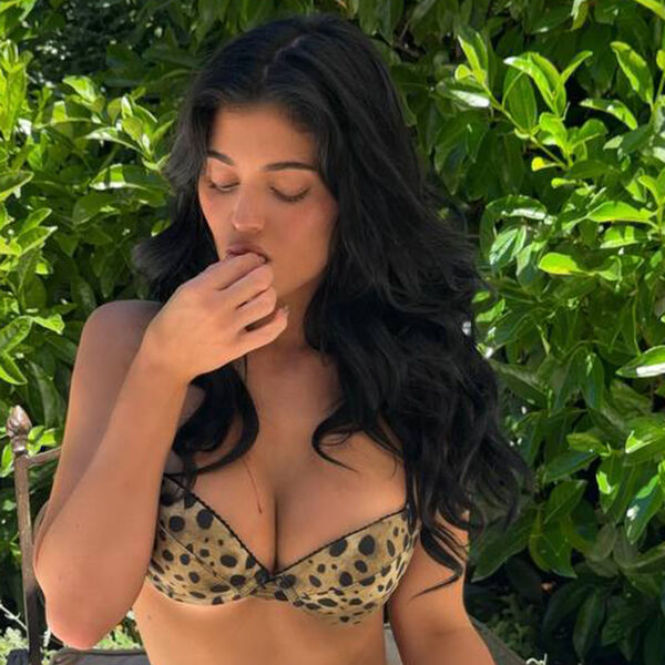 Кайли Дженнер позировала в леопардовом бикини. Она также распустила волосы и сделала легкий макияж. В кадре она сидела в саду и ела черешню.