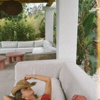 44-летняя Алессандра Амбросио снялась в красном купальнике, пестрых брюках и соломенной шляпе, лежа на диване во время отдыха на море. Волосы она распустила и отказалась от макияжа.