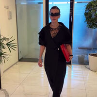 49-летняя Тина Канделаки предстала перед камерой в черном макси-платье, под которое надела бюстгальтер из прозрачного кружева. Телеведущая дополнила образ солнцезащитными очками, красным клатчем, украшениями и босоножками на каблуках. Продюсер собрала волосы в пучок и сделала макияж в естественном стиле.