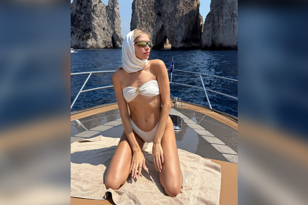 Елена Перминова позировала перед камерой в белом бикини с ракушкой, которое дополнила платком, солнцезащитными очками и золотым кольцом. Модель убрала волосы под головной убор и отказалась от макияжа. Знаменитость была запечатлена на палубе яхты. Снимок был сделан во время отдыха блогерши с ее возлюбленным Тарасом Романовым в Италии.