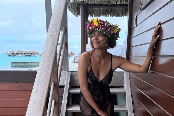 59-летняя Холли Берри предстала перед камерой в черной полупрозрачной кружевной ночнушке, под которую не стала надевать бюстгальтер. Актриса добавила к образу венок из цветов. Знаменитость была запечатлена с уложенными распущенными волосами и без косметики.