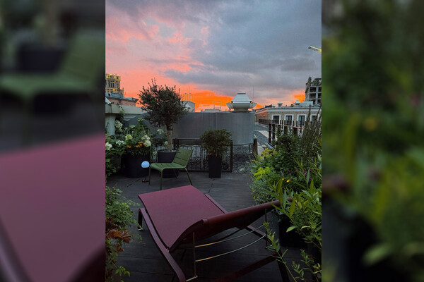В кадре он показал крышу дома, на которой была обустроена веранда со стульями, столами и озеленением.