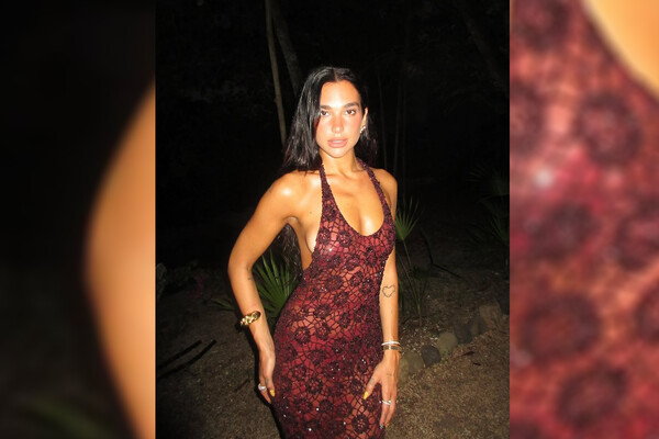 Дуа Липа позировала в «голом» красном платье с глубоким декольте и открытыми руками. Образ дополнили массивные браслеты и серьги. Волосы она распустила и сделала легкий макияж. В вечернем наряде она отправилась на празднование своего 30-летия, которое прошло в пятницу, 22 августа.