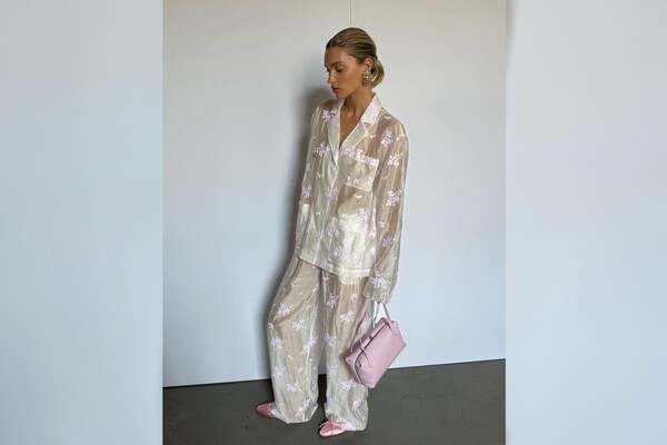 Эльза Хоск позировала в «голой» белой пижаме с цветочным принтом. Образ дополнила розовая сумка, балетки с бантиком и массивные золотые серьги. Волосы она собрала в хвост и сделала легкий макияж с розовыми румянами.