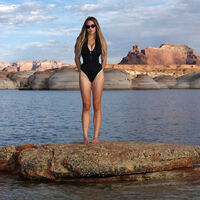 28-летняя Сидни Суини показала кадры, сделанные во время ее отдыха на озере. Актриса предстала перед камерой в черном слитном купальнике с декольте и солнцезащитных очках. Артистка была запечатлена с распущенными волосами и без косметики на фоне водоема и горы. Знаменитость рассказала, что каталась на водных лыжах, прыгала со скалы и гуляла с друзьями.