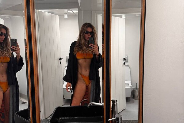 43-летняя Вера Брежнева стояла перед зеркалом в оранжевом бикини, которое дополнила черной накидкой и солнцезащитными очками. Певица также надела цепочку с кулоном и золотые браслеты. Поп-исполнительница была запечатлена с распущенными волосами и без макияжа.