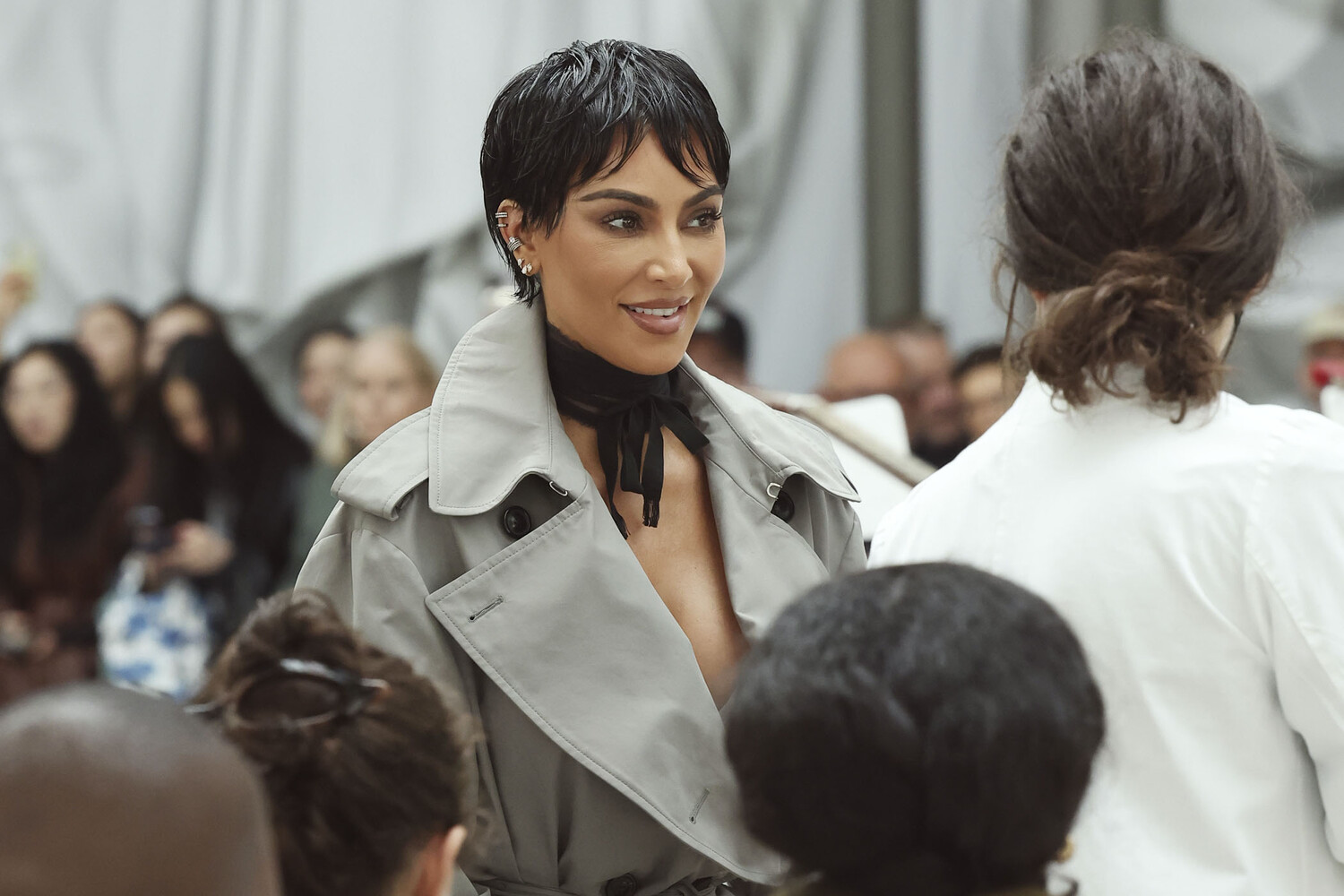 Бизнесвумен Ким Кардашьян пришла на показ в коротком парике в стиле Крис Дженнер. Об этом сообщает Harpers Bazaar.