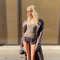 Елена Перминова предстала перед камерой в зеленом облегающем топе, который сочетала с короткими шортами со змеиным принтом и пальто. Модель дополнила наряд желтыми очками, кожаной сумкой и остроносыми туфлями. Манекенщица была запечатлена с уложенными распущенными волосами и макияжем в естественном стиле. Снимок был сделан во время пребывания знаменитости в Париже.