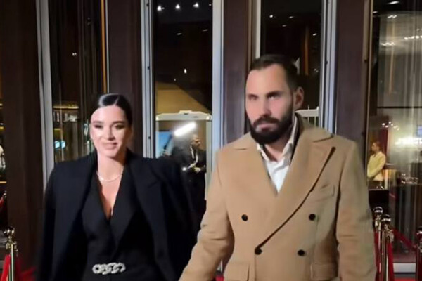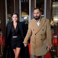 Ксения Бородина вышла на публику в черном мини-платье с глубоким декольте. Образ дополнила сумка из кожи, туфли с острым мысом и пальто. Вместе с ней на красной ковровой дорожке появился ее муж Николай Сердюков.