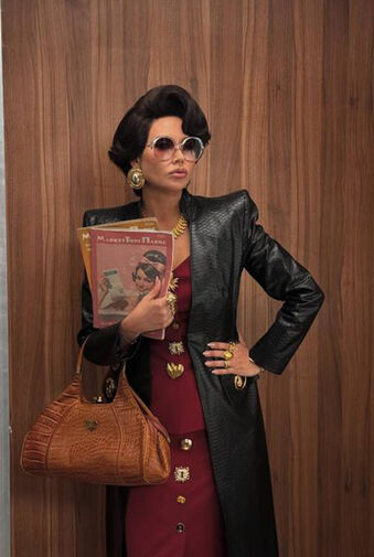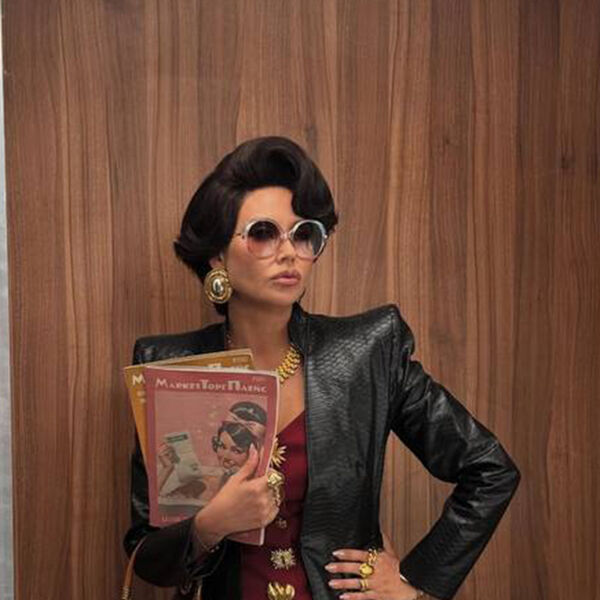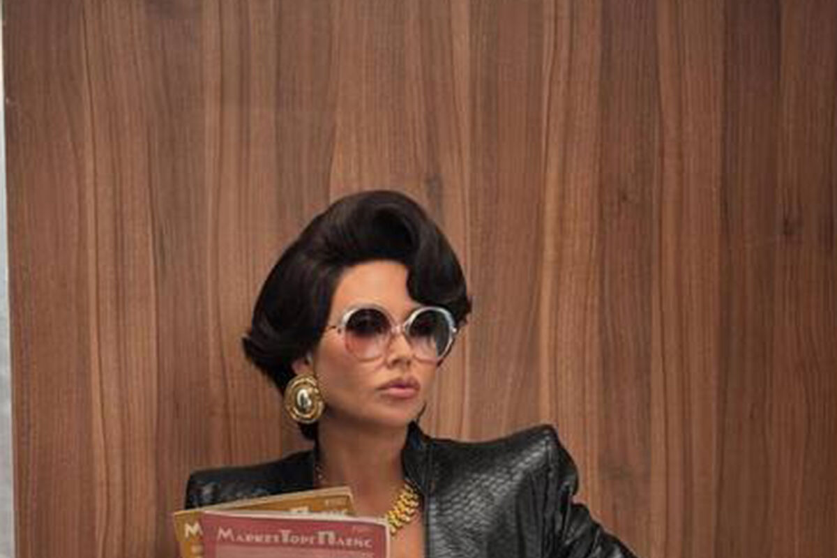 Ляйсан Утяшева позировала в бордовом жакете и облегающей юбке с золотыми пуговицами, а также в черном кожаном тренче и солнцезащитных очках. Ей также сделали ретро укладку с пучком и макияж с угольно-черными стрелками и розовой помадой.