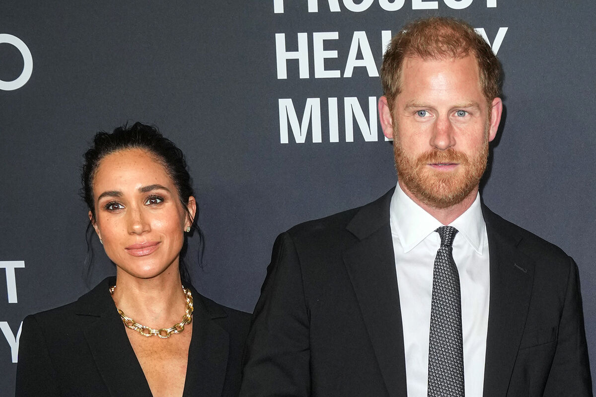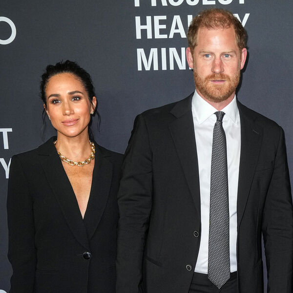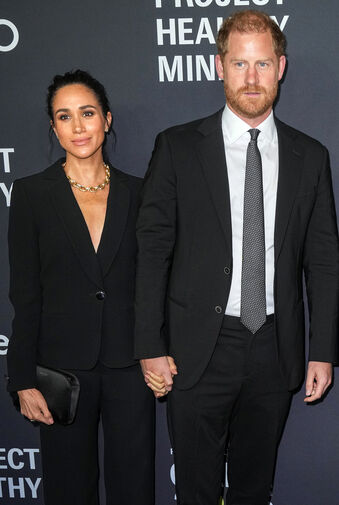 Пара посетила ежегодный гала-вечер Project Healthy Minds, посвященный Всемирному дню психического здоровья. 44-летняя герцогиня Сассекская позировала в черном жакете Armani, надетом на голое тело. Образ дополнило массивное золотое колье. Принц Гарри предпочел костюм с галстуком.