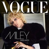 32-летняя Майли Сайрус стала героиней нового выпуска французского журнала Vogue. На обложке певица предстала в парике с короткими кудрявыми волосами и макияжем с черной подводкой, тушью и нюдовой помадой. Поп-исполнительница позировала в черной короткой шубе, белой рубашке и молочной атласной юбке. Фотосессия проходила в отеле Château Marmont в Лос-Анджелесе. Автором съемки выступил фотограф Марио Сорренти.