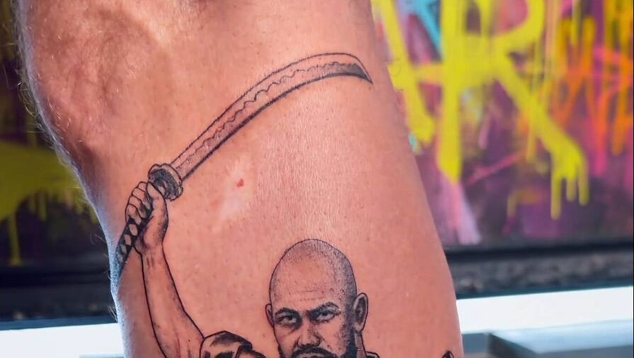 Джиган посетил мастера по тату вместе со своим сыном Давидом. Рэперу сделали на ноге татуировку — самурая, который держит в руках мечи. Рядом с исполнителем в костюме война сидел его наследник.