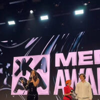 Нюша пришла на премию в черном латексном мини-платье с глубоким декольте и открытой спиной. Образ дополнили босоножки на высоких каблуках. Волосы певице уложили мягкими локонами и сделали вечерний макияж.
