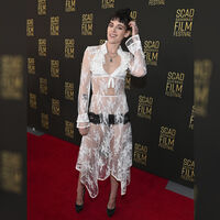 Кристен Стюарт посетила 28-й кинофестиваль SCAD, который прошел 31 октября в Саванне. Актриса вышла на красную дорожку в белом полупрозрачном платье с кружевной вышивкой. Артистка также надела черные трусы, туфли на каблуках и серебристое ожерелье. Знаменитости уложили волосы в высокий пучок и сделали макияж с коричневыми тенями.