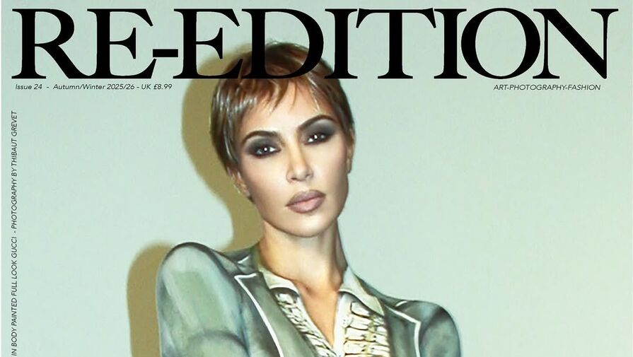 45-летняя Ким Кардашьян стала героиней нового выпуска журнала Re-Edition. На обложке модель позировала без бюстгальтера. Тело звезды реалити-шоу было разрисовано бодиартерами Future Rep и Афиной Пагинтон. Художники изобразили на бизнесвумен образ из новой коллекции Gucci. Ким Кардашьян была запечатлена в парике со светлыми волосами и короткой стрижкой и макияжем с темными тенями и коричневой помадой. Автором съемки выступил фотограф Тибо Греве.