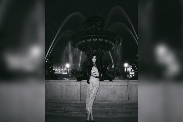 Ханде Эрчел позировала в белом кружевном платье снялась у фонтана в Париже. Образ дополнила косуха из кожи и туфли с острым мысом. Волосы ей уложили мягкими прядями и сделали вечерний макияж.