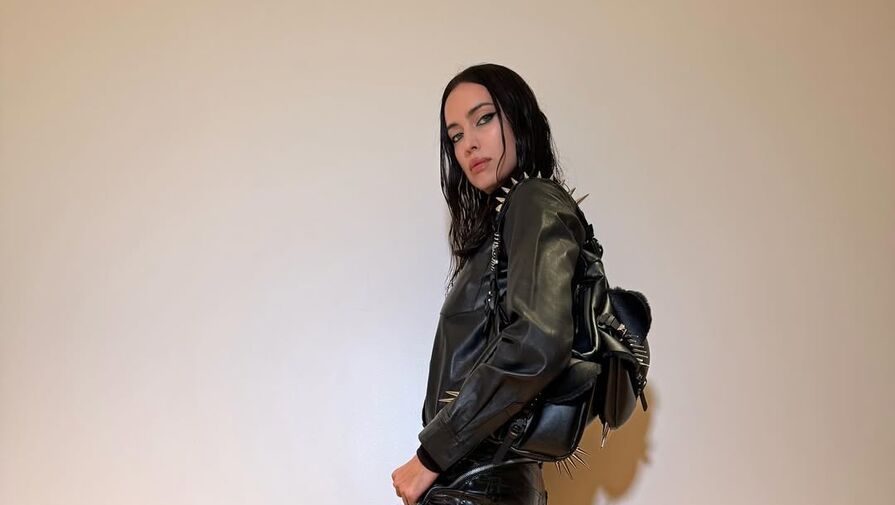 Ирина Шейк снялась в кожаных брюках, косухе, казаках и сумке с шипами. Волосы ей выпрямили и сделала вечерний макияж с угольно-черными стрелками.