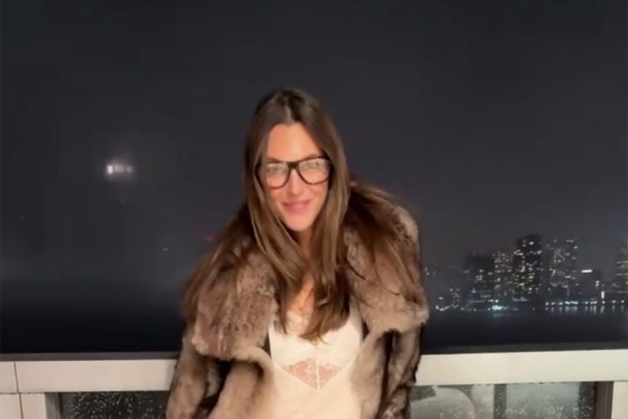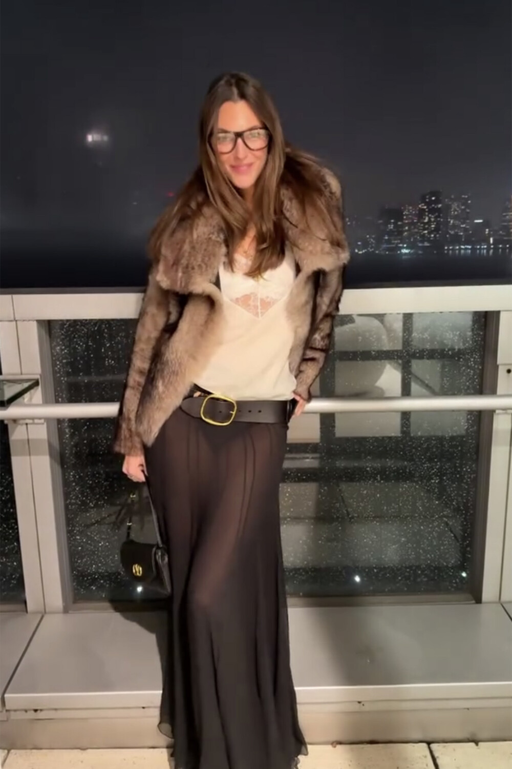 Виттория Черетти предстала перед камерой в белом топе с кружевом, который сочетала с темной полупрозрачной юбкой с кожаным ремнем и короткой шубой. Модель добавила к образу очки и черные сумку. Манекенщица позировала с прямыми распущенными волосами и макияжем в естественном стиле на балконе.