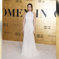 Ана де Армас появилась на публике в блестящем платье «невесты» с открытыми плечами и руками. Волосы ей уложили в пучок и выпустили передние пряди, а также сделали легкий макияж.
