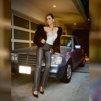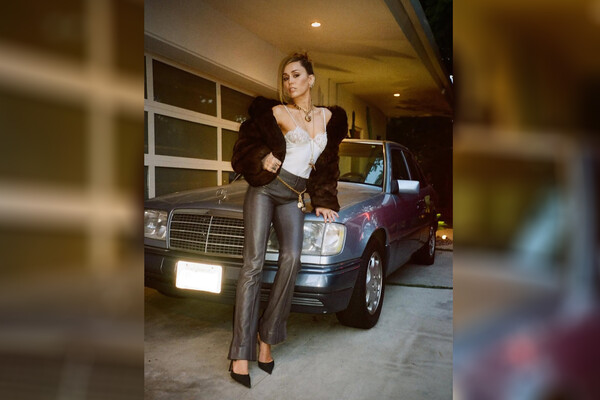 33-летняя Майли Сайрус снялась в белом топе с кружевным лифом, который дополнила серыми кожаными брюками, темно-коричневой короткой шубой и черными туфлями на каблуках. Певица завершила образ серьгами и каффами, золотым массивным колье, кольцом и цепочкой на талию. Актриса была запечатлена с собранными волосами и макияжем на фоне автомобиля.