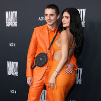 Кайли Дженнер и Тимоти Шаламе посетили премьеру фильма «Марти Великолепный», в котором актер исполнил главную роль. Мероприятие состоялось 8 декабря в Лос-Анджелесе. Модель появилась на публике в оранжевом макси-платье с глубоким декольте и вырезами и массивном колье с крестами. Артист предпочел оранжевую рубашку, кожаный костюм в тон, черную сумку и ботинки. Он обнимал звезду реалити-шоу перед фотографами.