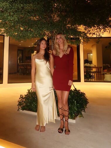 Иванка Трамп позировала перед камерой в красном облегающем мини-платье с декольте, которое дополнила золотыми серьгами-кольцами, ожерельем и босоножками. Бизнесвумен стояла с распущенными волосами и макияжем. Дочь Дональда Трампа позировала с дочерью Арабеллой Роуз.