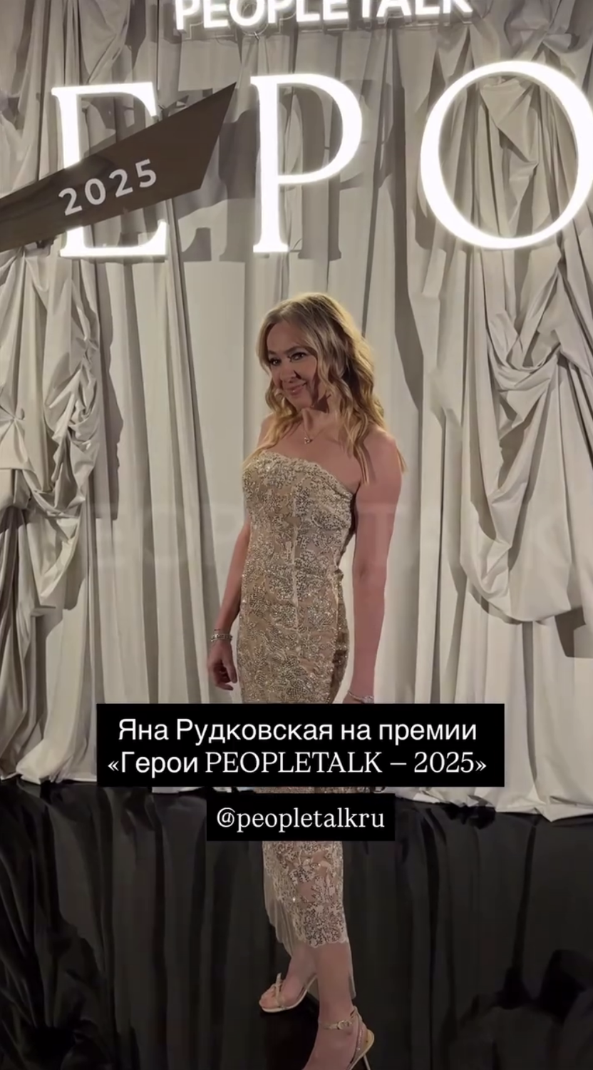 Продюсер Яна Рудковская в золотом платье появилась на III церемонии вручения культурно-просветительской премии «Герои PEOPLETALK», которая прошла 10 декабря в Москве. Издание опубликовало видео в Instagram (владелец компания Meta признана в России экстремистской и запрещена).
