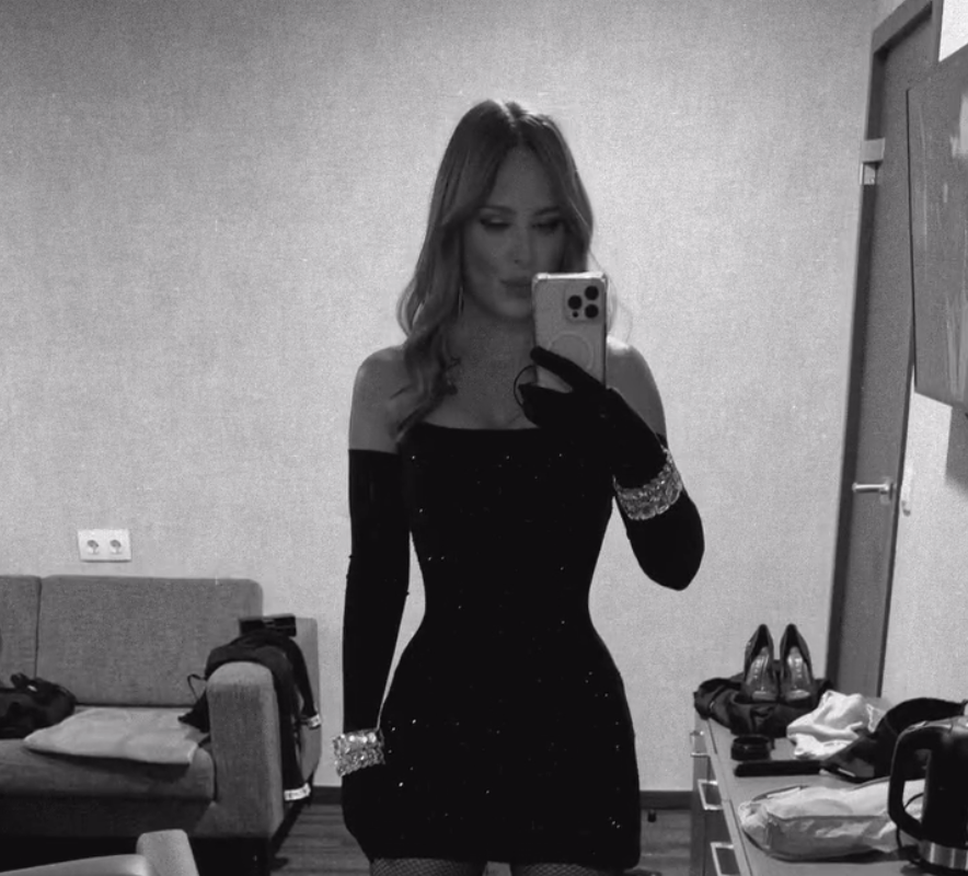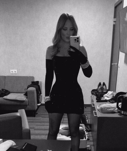 47-летняя Ани Лорак вышла на публику в черном блестящем мини-платье, которое дополнили длинные перчатки в тон, массивные браслеты, серьги со стразами и сетчатые колготки. Певице уложили распущенные волосы в локоны и сделали вечерний макияж.
