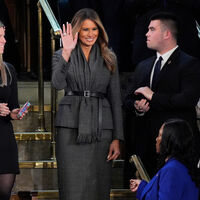 В ноябре Мелания Трамп встретила рождественскую елку для Белого дома. Жена президента США вышла на публику под исполнение военного оркестра. Бизнесвумен была одета в белое пальто Dior, бордовые кожаные перчатки и клетчатые туфли на каблуках Manolo Blahnik. Первой леди США уложили распущенные волосы и сделали макияж в нюдовых тонах.
