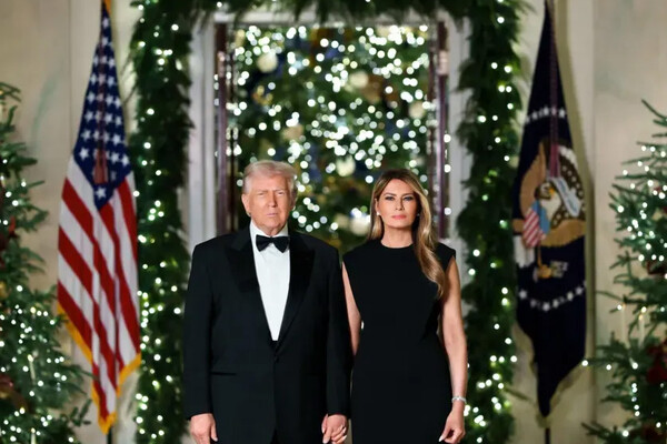 В ноябре Мелания Трамп встретила рождественскую елку для Белого дома. Жена президента США вышла на публику под исполнение военного оркестра. Бизнесвумен была одета в белое пальто Dior, бордовые кожаные перчатки и клетчатые туфли на каблуках Manolo Blahnik. Первой леди США уложили распущенные волосы и сделали макияж в нюдовых тонах.