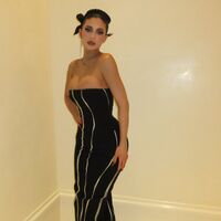 Кайли Дженнер показала кадры, сделанные во время празднования католического Рождества. Для мероприятия модель выбрала винтажное облегающее макси-платье от Джонна Гальяно с драпировкой снизу. Бизнесвумен добавила к образу туфли на каблуках в тон. Звезде реалити-шоу сделали укладку с косами и макияж с темными тенями, контурингом, румянами и матовой темно-розовой помадой.