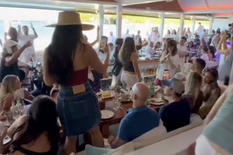 Лорен Санчес и Джефф Безос были замечены в заведении Nikki Beach, которое находится на острове Сен-Бартелеми. Миллиардер и его супруга проводили время с друзьями. Когда официант принес напитки, журналистка принялась танцевать. Телеведущая была одета в красный облегающий топ, джинсовую мини-юбку и соломенную шляпу.