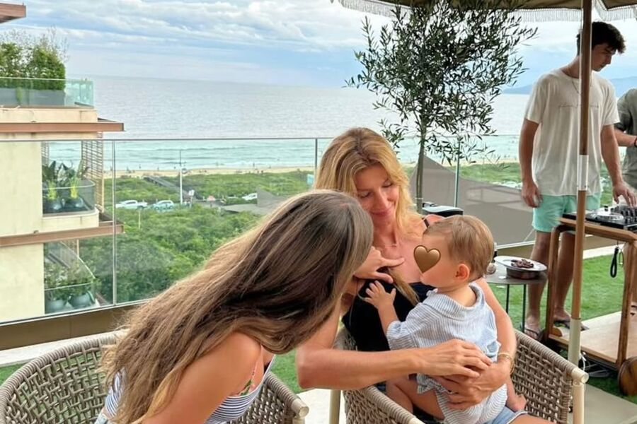 45-летняя Жизель Бюндхен была запечатлена с сыном на руках. Рядом с манекенщицей сидела ее 12-летняя дочь Вивиан. Манекенщица была одета в черную майку и короткие джинсовые шорты. Звезда подиумов позировала с распущенными волосами и без косметики. Малыш сидел в полосатом костюме, а Вивиан — в облегающем топе и шортах. Супермодель также показала фото с другими членами семьи.