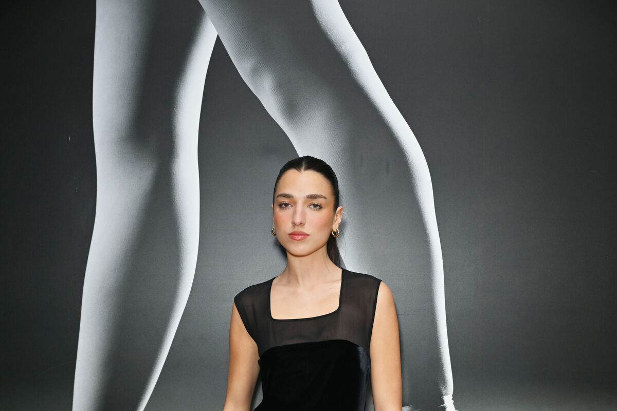 Сестра-«близнец» Дуа Липы вышла на публику в черном бархатном мини-платье с глубоким декольте. Образ дополнили черные туфли и колготки. Волосы Рине собрали в высокий хвост и сделали вечерний макияж.