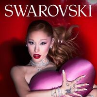 Ариана Гранде в новом рекламном кампейне Swarovski. Певица позировала в красном корсетном платье с глубоким декольте. Ей также сделали броский макияж.