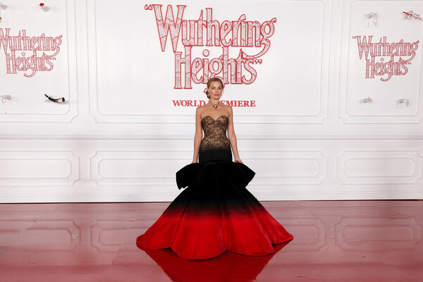 Марго Робби посетила премьеру фильма по роману Эмили Бронте «Грозовой перевал», в котором сыграла главную роль. Мероприятие состоялось 28 января в Голливуде. Актрису сопровождал ее коллега по экранизации Джейкоб Элорди. Для выхода в свет артиста выбрала корсетное платье с кружевных верхом и черно-красной макси-юбкой Schiaparelli. Образ артистки завершило золотое колье Cartier с бриллиантом в форме сердца, которое принадлежало Элизабет Тейлор. Визажист сделал знаменитости макияж в нюдовых тонах, а стилист уложил волосы в пучок.
