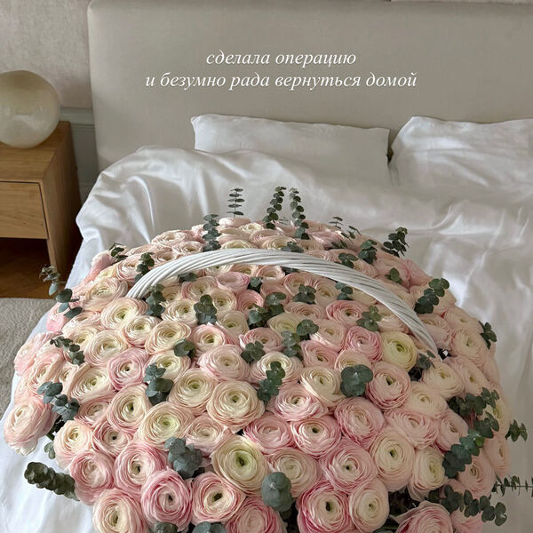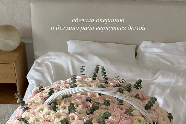 Елена Перминова опубликовала фото корзины с цветами на кровати в спальне. Модель несколько дней не выходила на связь в соцсетях и не публиковала контент. Причину и последствия операции Перминова не раскрыла.
