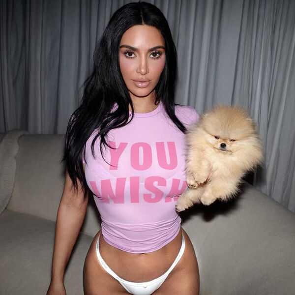 45-летняя Ким Кардашьян снялась в рекламе новой коллекции собственного бренда Skims, выпущенной в преддверии Дня святого Валентина. Модель примерила розовый облегающий топ с короткими рукавами и белые стринги. Бизнесвумен была запечатлена с распущенными волосами и макияжем с черной тушью, розовыми румянами и блеском для губ. Звезда реалити-шоу держала в руке шпица.