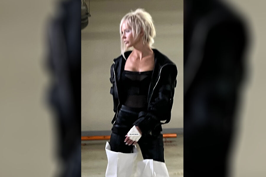 39-летняя Глюкоза предстала перед камерой в черном полупрозрачном топе, который дополнила кожаной курткой, короткими шортами и колготками. Певица завершила образ белыми ботфортами. Исполнительница вышла на публику с уложенными волосами и макияжем.