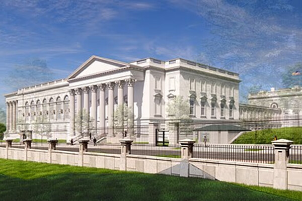 «Будучи идентичным по высоте и масштабу основному зданию, новый зал полностью соответствует историческому облику Белого дома. Это первая визуализация, представленная публике. Обратите внимание: северная стена нового крыла является репликой северного фасада Белого дома, который виден справа на изображении», — написал в посте Трамп.