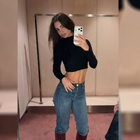 34-летняя Эмили Ратаковски стояла перед зеркалом в черном облегающем топе с длинными рукавами, который сочетала с голубыми джинсами и красными кожаными сапогами с анималистичным принтом. Модель позировала с распущенными волосами и макияжем с черной подводкой. Снимок был сделан во время шопинга манекенщицы.