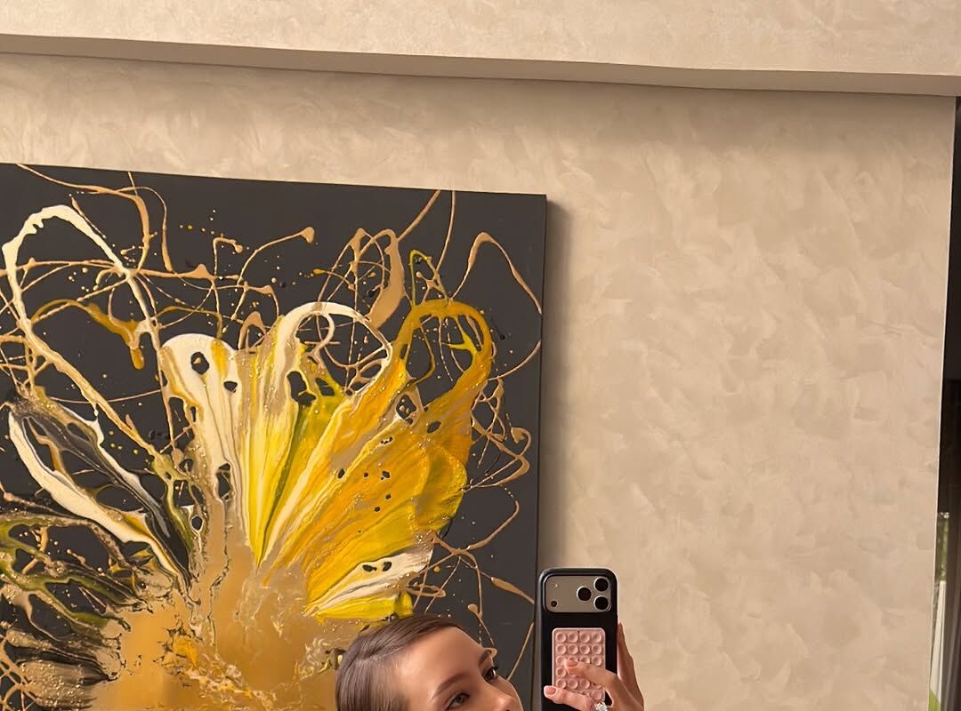 Недавно модель продемонстрировала фигуру после родов, которые прошли 2 августа. Она опубликовала в личном блоге видео, где предстала перед камерой в белом облегающем платье, которое дополнила укороченной шубой в тон, массивной цепью и бордовой сумкой. Модель позировала с уложенными волосами и макияжем в естественном стиле.