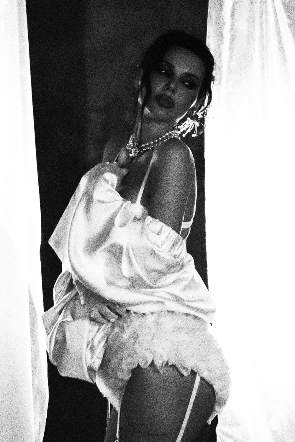 37-летняя Оксана Самойлова позировала перед камерой в бюстгальтере, накидке и микрошортах. Блогерша добавила к образу массивное ожерелье. Знаменитость предстала в кадре с собранными в пучок волосами и макияжем.