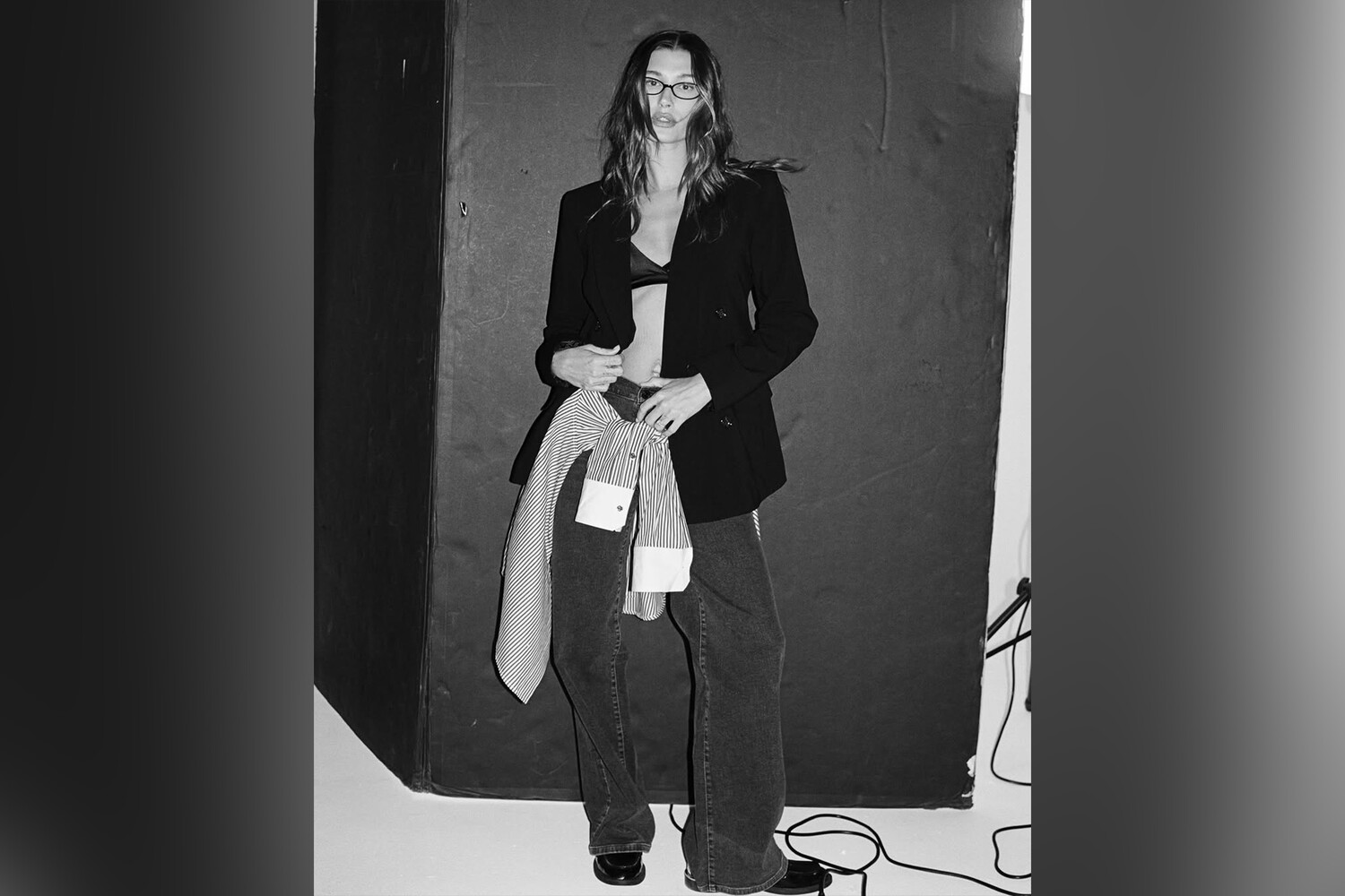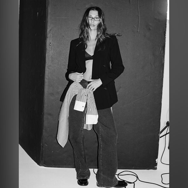 29-летняя Хейли Бибер стала героиней новой коллекции бренда DKNY. На одном из кадров модель предстала в черном бюстгальтере, который дополнила жакетом, широкими джинсами и ботинками. Манекенщица повязала на пояс полосатую рубашку и надела очки. Звезде уложили волосы в легкие локоны и сделали макияж в естественном стиле.