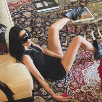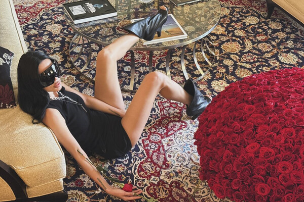 Оксана Самойлова снялась в кожаных шортах, майке и кожаных сапогах. Волосы она распустила и сделала легкий макияж. Бизнесвумен позировала на ковре рядом с букетом алых роз.