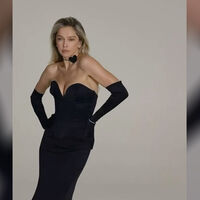 42-летняя Вера Брежнева позировала в облегающем черном платье из бархата с глубоким декольте. Образ дополнил чокер с сердцем и длинные перчатки. Волосы ей уложили крупными локонами и сделали объем у корней. Съемку певица приурочила к 14 февраля.