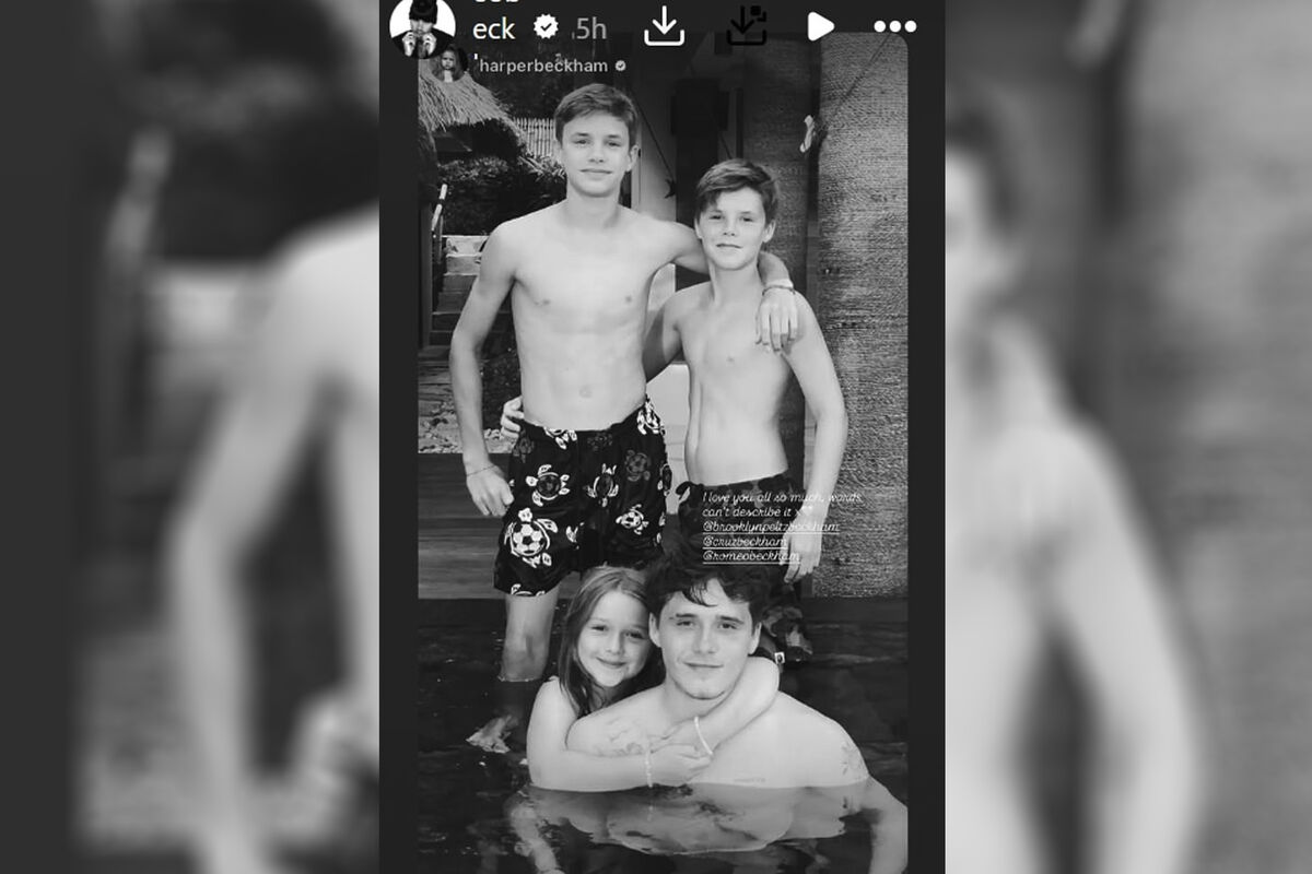 14-летняя Харпер Бекхэм опубликовала фото, на котором была запечатлена с братьями. Она стояла в бассейне и обнимала Бруклина.